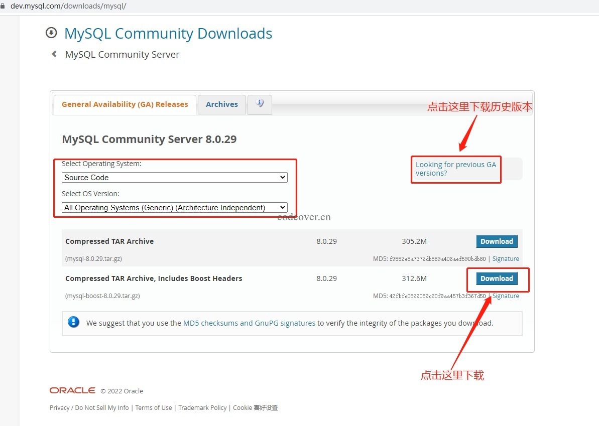 下载安装包 MySQL 官网:https://www.mysql.com/cn/ mysql-8.0.29源码包:https://dev.mysql.com/get/Downloads/MySQL-8.0/mysql-boost-8.0.29.tar.gz
