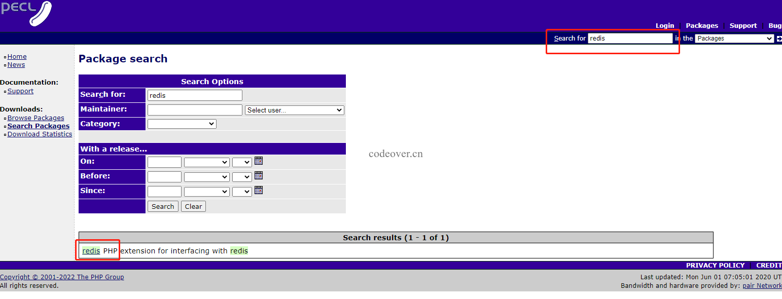 pecl 官网:https://pecl.php.net,在右上角输入 redis 并搜索并进入,复制相应的下载链接