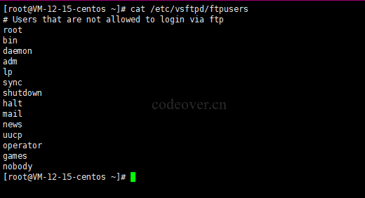/etc/vsftpd/ftpusers 这个文件是禁止使用 vsftpd 的用户列表文件。记录不允许访问 FTP 服务器的用户名单,一般把一些对系统安全有威胁的用户账号记录在此文件中,以免用户从 FTP 登录后获得大于上传下载操作的权利,而对系统造成损坏。其默认值为: