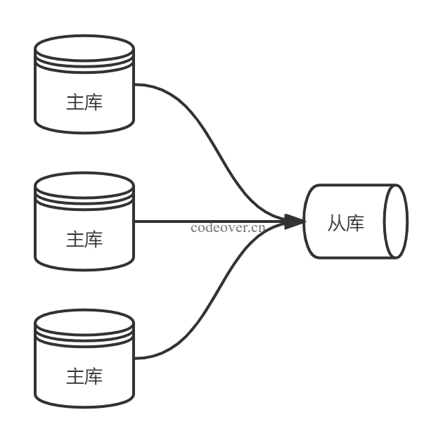 多主一从可以将多个主库备份到同一从数上,一般情况下不会使用此模型。此模型需要 mysql 版本大于等于 5.7