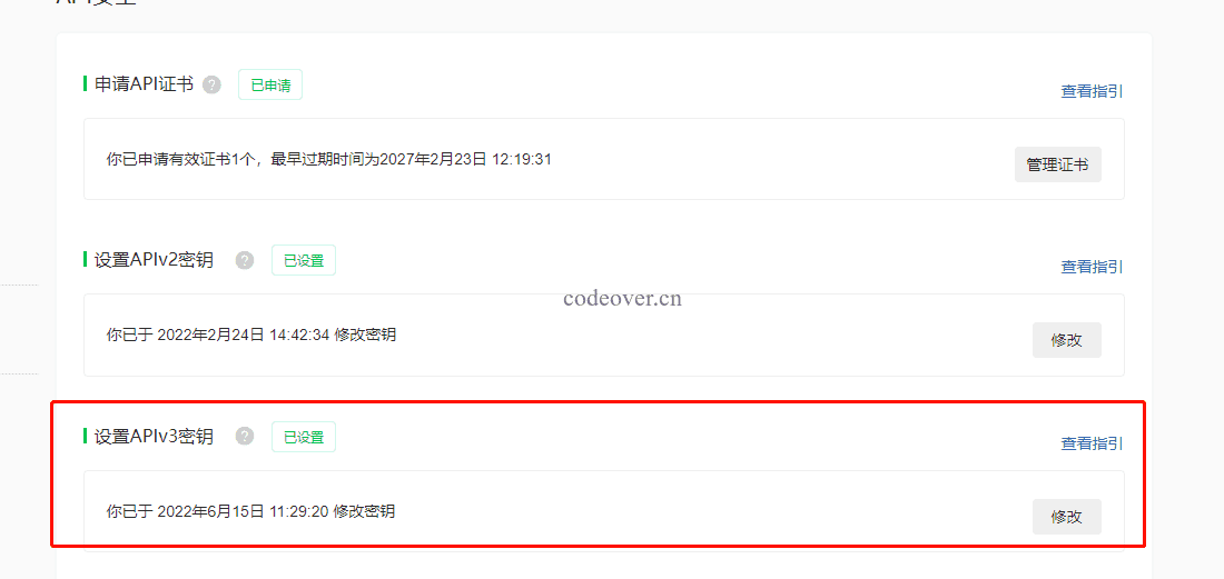 public function getPlatformCertificate() { $apiv3Key = $this->config['pay_sign_key']; $cache_key = 'wechatpay_apiv3_cate_' . $apiv3Key;